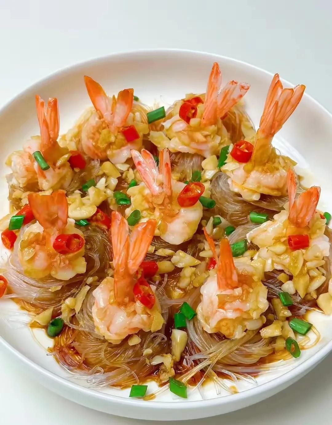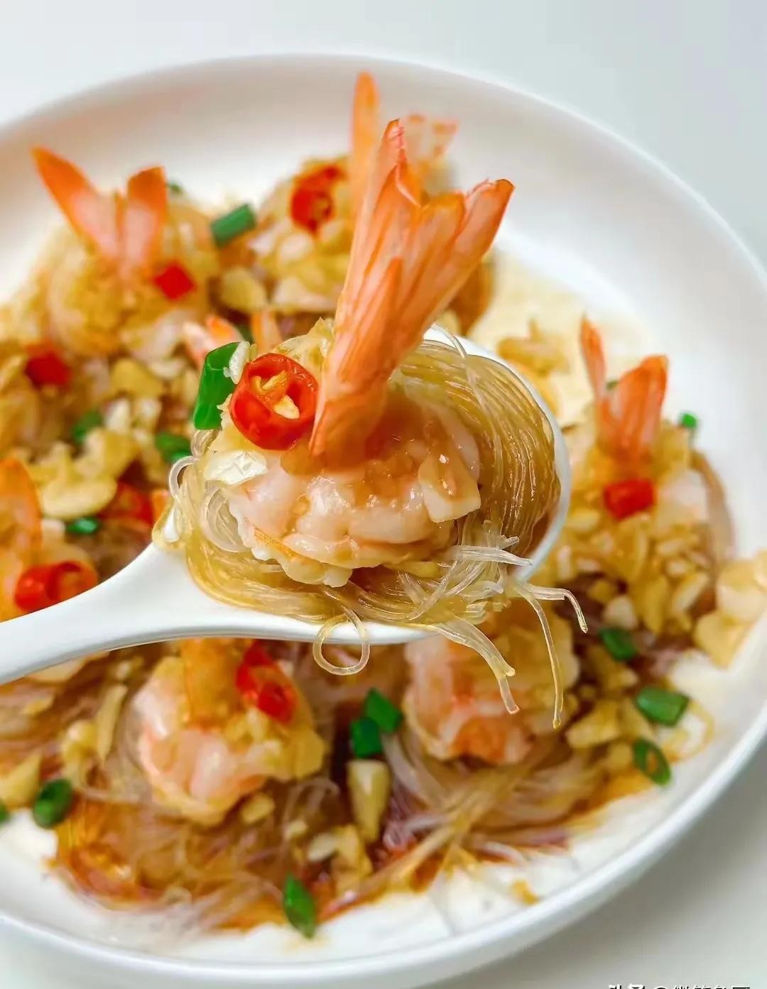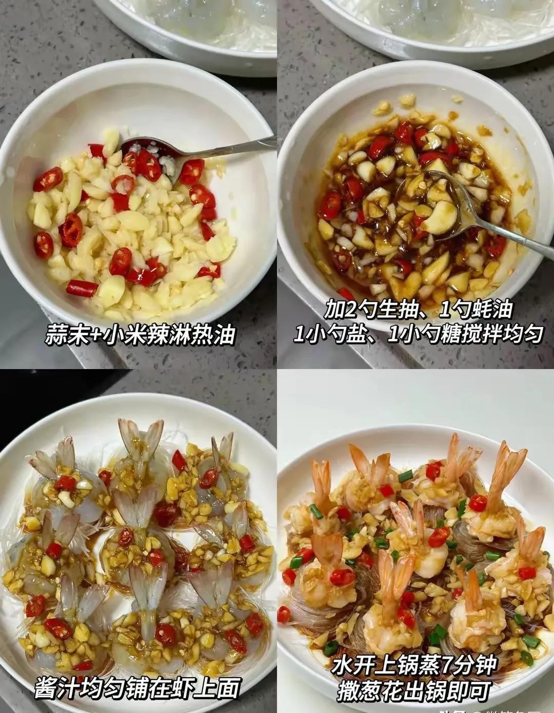 先说说这四道好菜吧。第一道,粉丝蒜蓉虾,蒜蓉的香、粉丝的滑、虾肉的鲜,三者完美结合,寓意着生活如虾般红红火火,粉丝则象征着长长久久的好运。