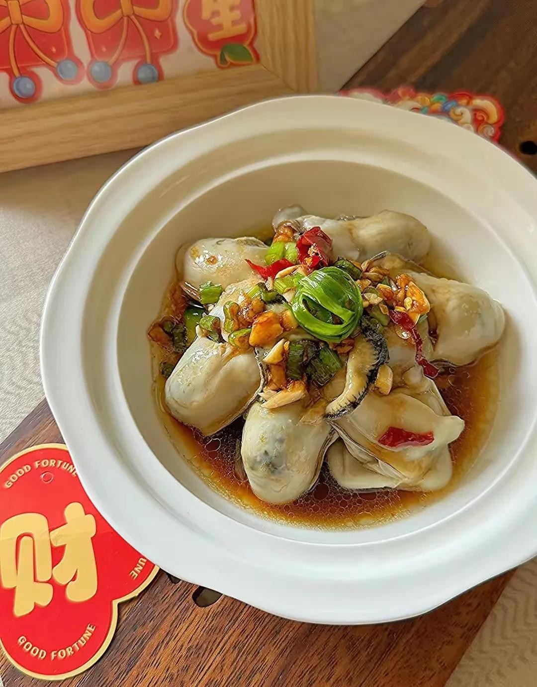 第四道,凉拌生蚝,生蚝肉质鲜美,凉拌的做法更是清爽开胃,寓意着新的一年里,日子越过越有滋味。