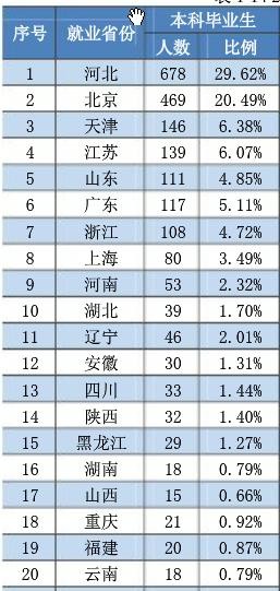 本科毕业生省内就业主要流向的城市是:石家庄、秦皇岛、保定、唐山。