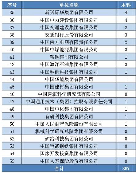 2020届本科毕业生中,共有367人签约中央企业。具体分布如下: