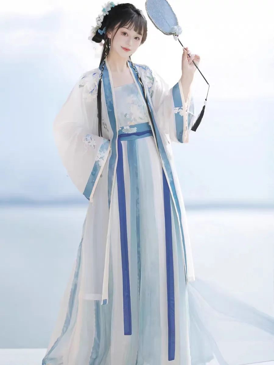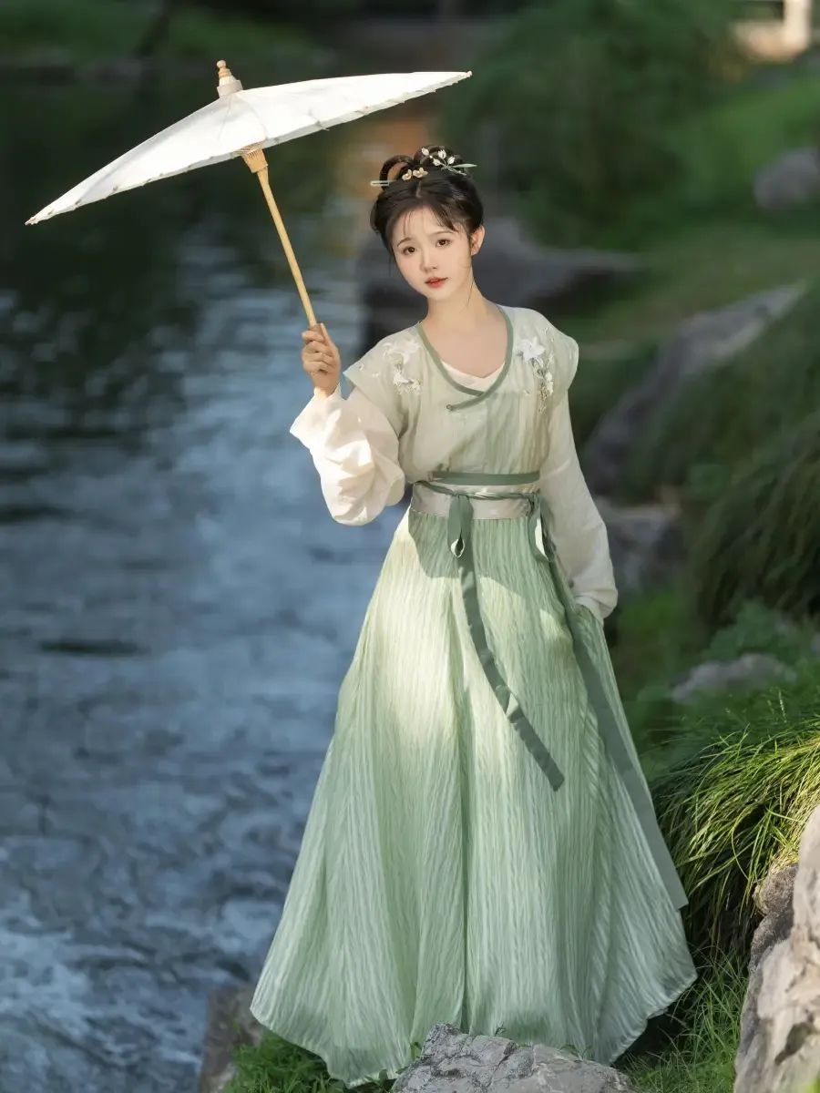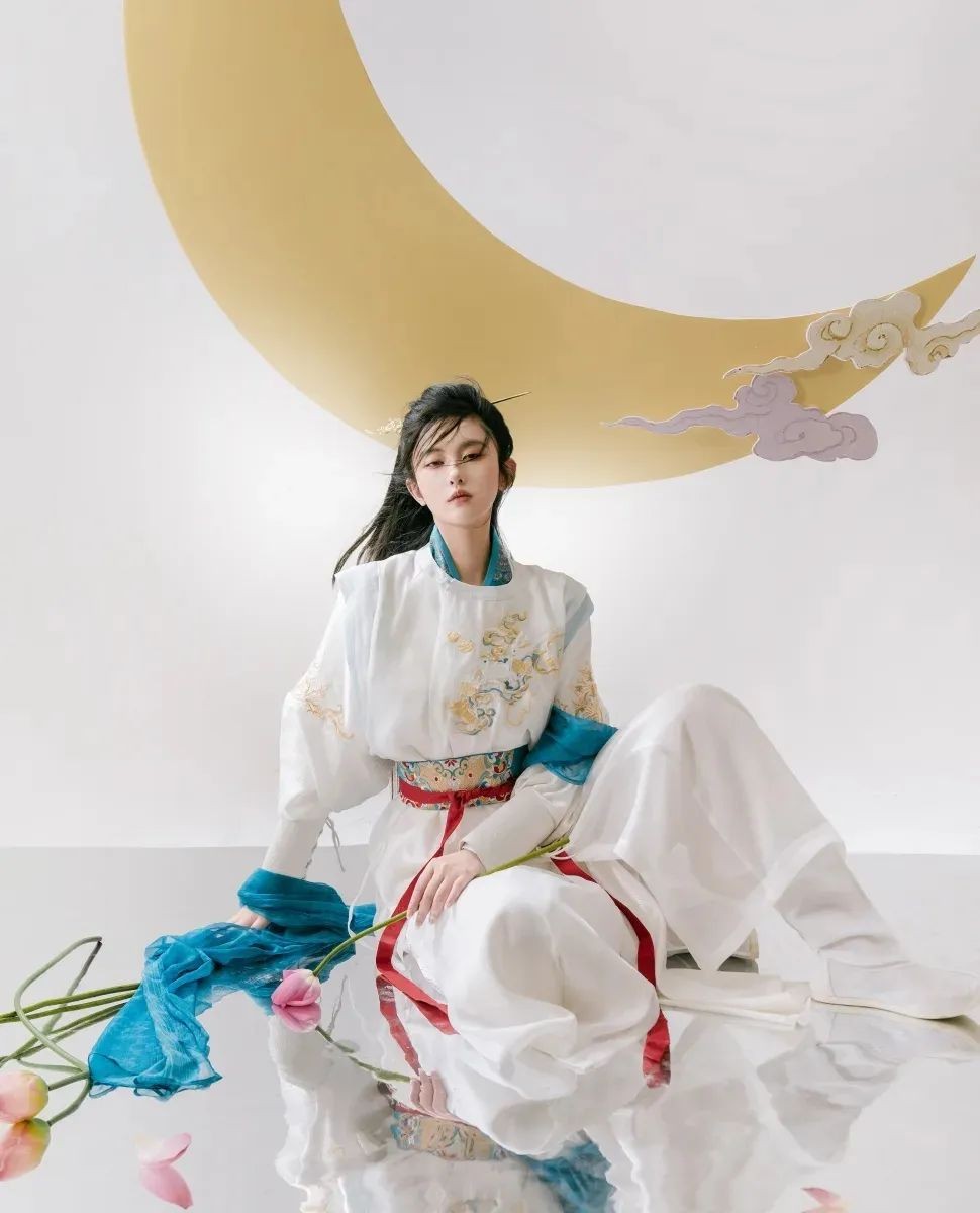 4. 若你身材娇小纤细,襕衫式汉服是一个不错的选择。它能够拉长身形比例,突出你的柔美可人形象。