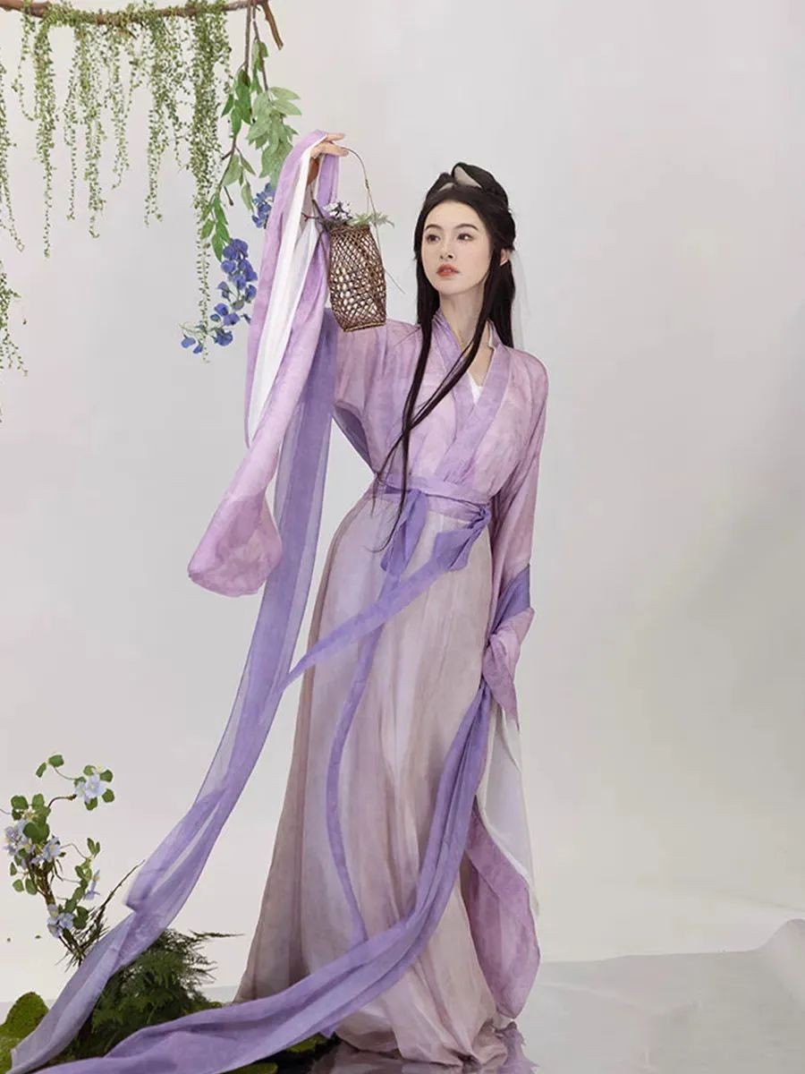 4. 襕衫式:襕衫式汉服的特点是上衣袖子与裙子连为一体,适合身形娇小、纤细的人。这种形制的汉服注重腰部线条和身体的比例,能够营造出柔美可人的形象。