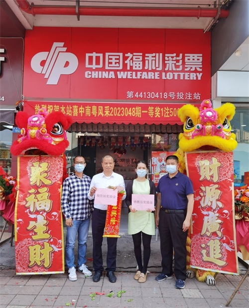 佛山福彩中心的工作人员也特意赶到现场给投注站的站主和销售员送上奖励金。附近的老彩民纷纷前往祝贺,一同拍照留念。