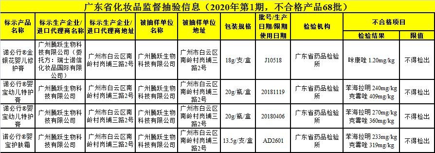 据广东省药品监督局2月12日发布的化妆品监督抽检通告,68批次化妆品不合格,其中网红品牌诺必行4批次婴幼儿产品检出违禁物质。