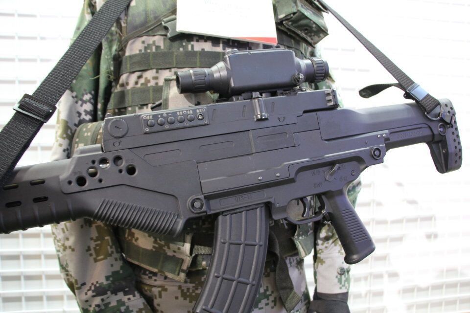 最引起争议的还是因为QTS-11单兵作战系统酷似美国XM-29单兵作战系统:步枪的枪托置于最下方,中间则是榴弹发射器,最上方则是整合了瞄准和信息传输的火控系统。榴弹发射器则在扳机后方供弹,榴弹和步枪弹之间的模式切换用握把附近的按钮,由射手扣动扳机发射。