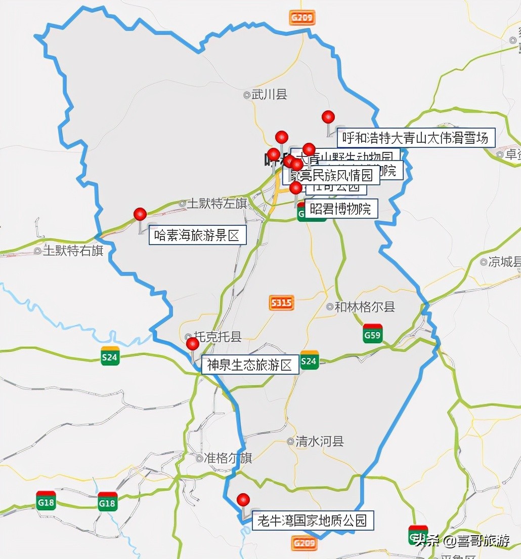 3、内蒙古呼和浩特市十大景点自驾游行程安排: