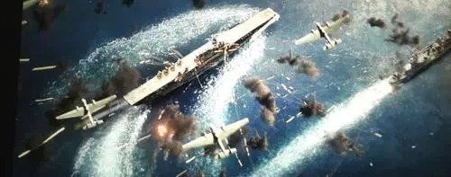 电影中包含了惊险激烈的海战和空战场景,展示了舰队和飞行员之间的战斗。这些场景的视觉效果和特技效果令人印象深刻,还原了当时的战斗环境,包括飞机的轰炸、舰船的炮火和海面上的爆炸。
