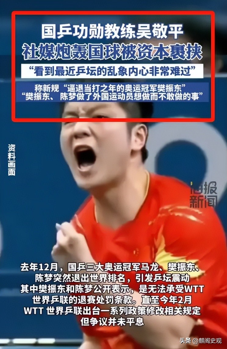 澎湃新闻2025-02-15《吴敬平社媒炮轰国球被资本裹挟,此前鼓励樊振东活出自己》