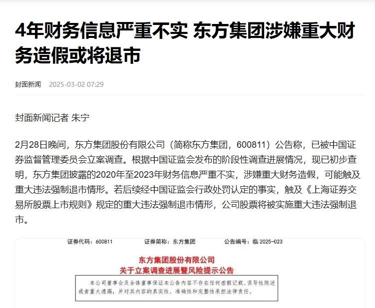 封面新闻——《4年财务信息严重不实 东方集团涉嫌重大财务造假或将退市》
