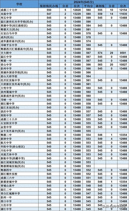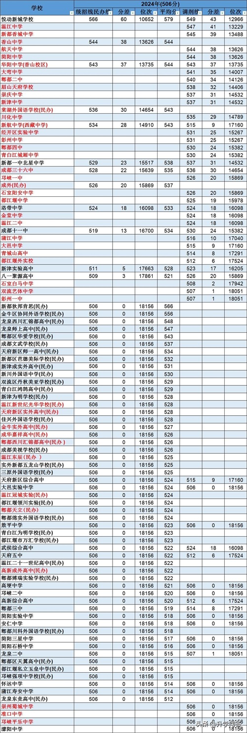 第一部分:2024成都中考第二批次录取高中,重高线左右高中排名