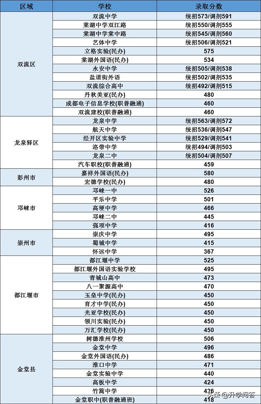 下面是小编特别整理的了来自成都其他区的录取分数信息,全面呈现给家长以供参考和比对!