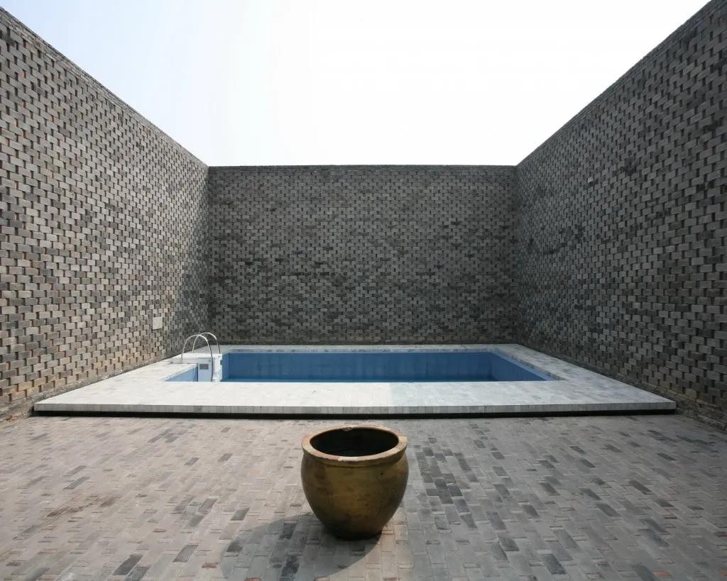 游泳池前摆放着一口大缸,它曾经被用来酿造白酒,现在则盛满了水。这就是“井宇”的来历,让人有一点坐井观天的感觉。井宇现在作为民宿,旅行者可以在这里品酒、住宿。