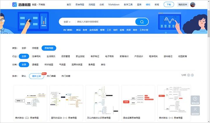 画思维导图之前,选中一款好用的工具是绘制成功的开端,我自己平时比较喜欢用【迅捷画图】,工具内有基础版和高阶版教程可以学习,也有超多漂亮创意模板可供参考,小白也能轻松上手。