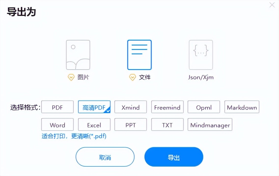 4、思维导图绘制完毕后,可以导出为图片、文件等,基本能满足大部分宝子的导出格式需求。