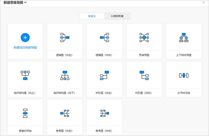 1、进入网页后新建一个空白思维导图,从模板中新建也可以。