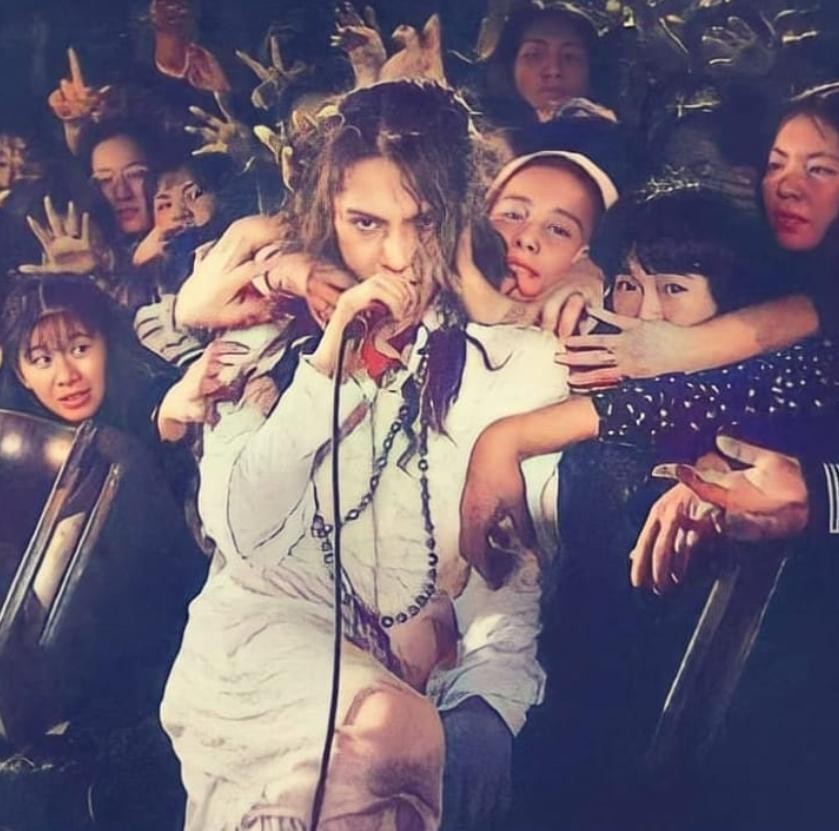 宝井秀人无疑是乐队的"灵魂人物"。台上的他,一举手一投足都散发着无与伦比的魅力。明明长着一张雌雄莫辩的俊美面孔,眼神却凌厉有力,简直要将人生吞活剥一般。