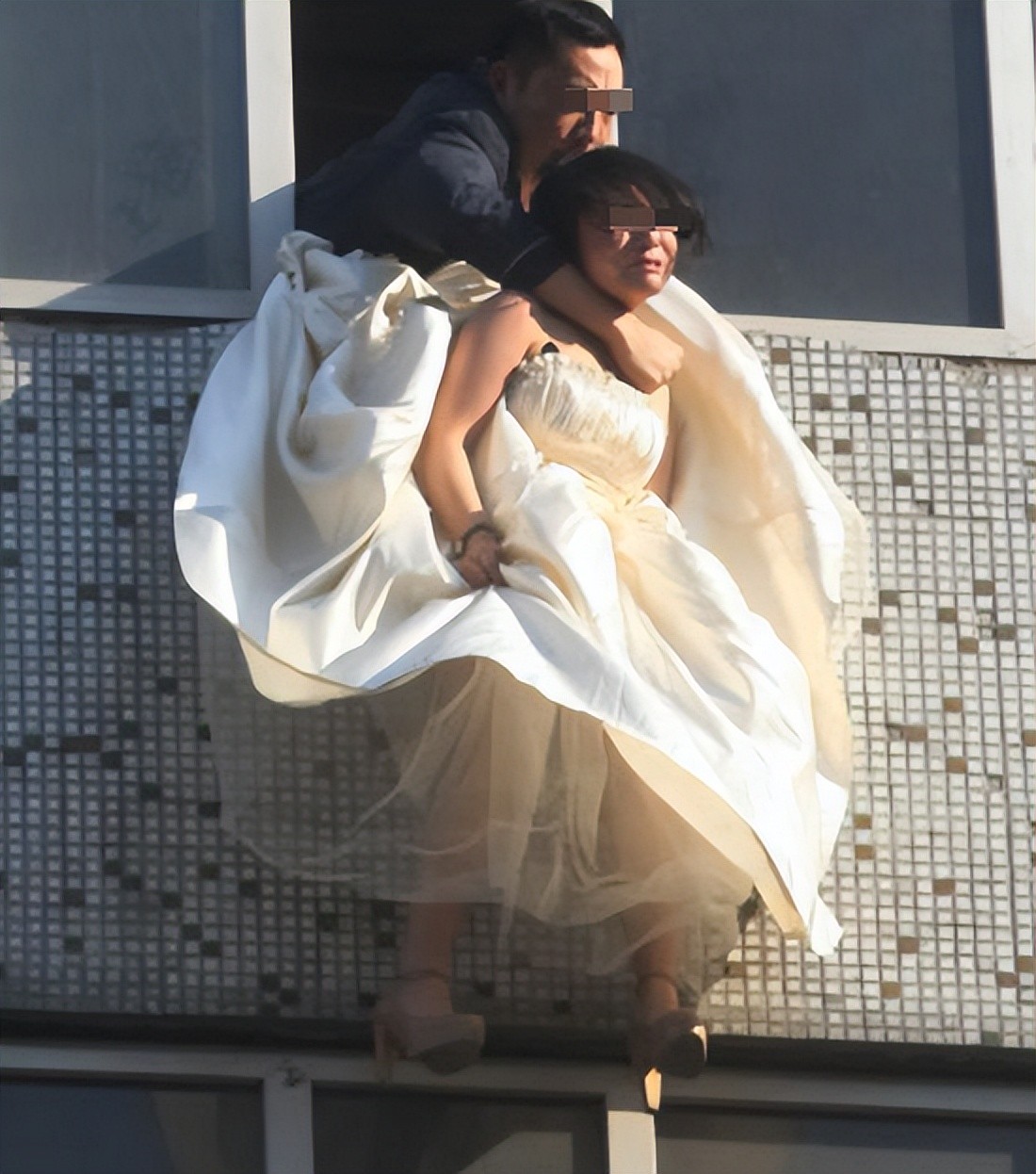 张振军看到老婆要跳楼,立马就跑过来阻止。