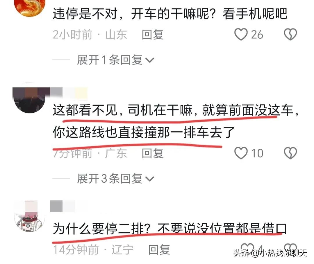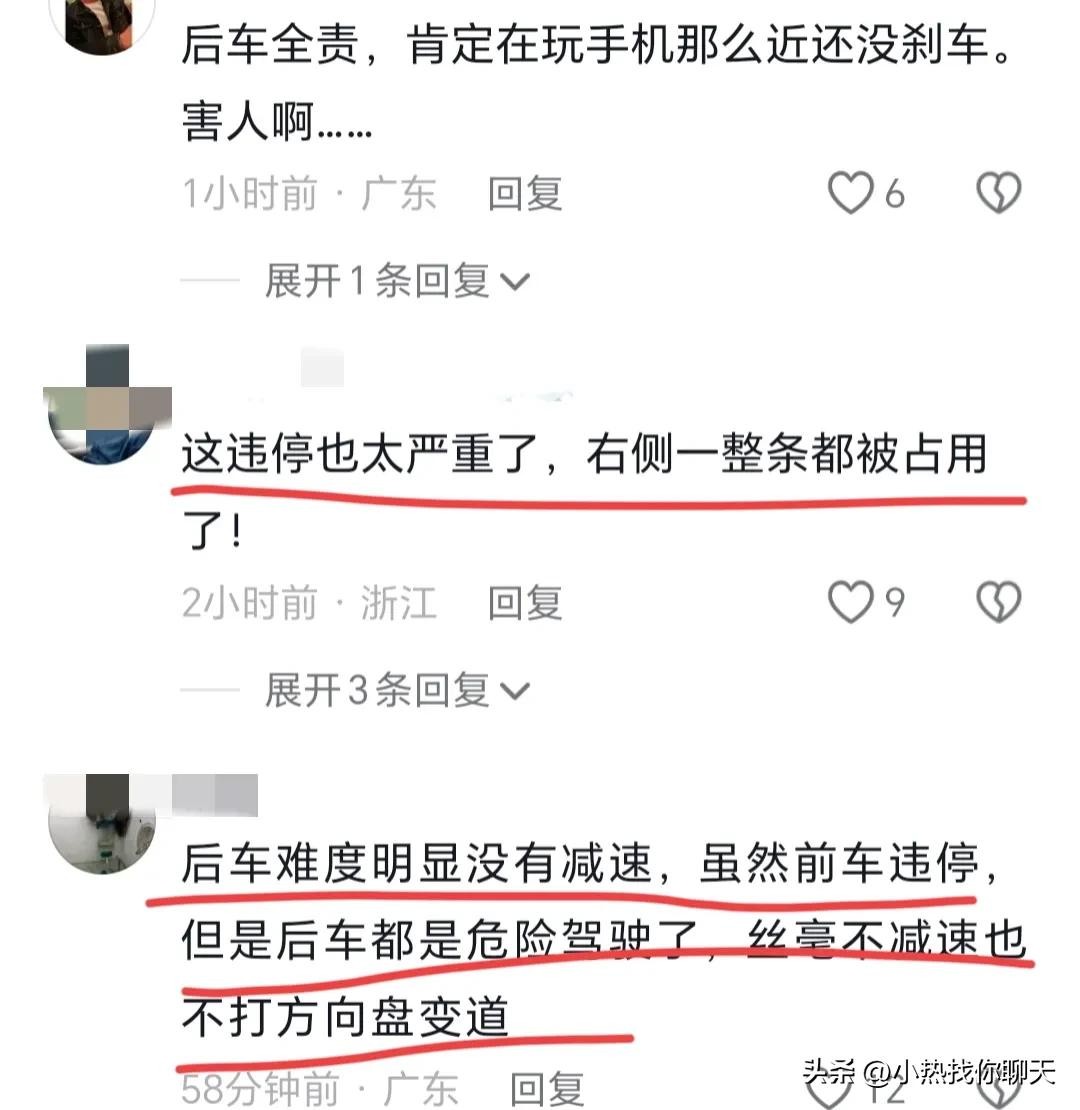网友愤怒:难道马路是他家想怎么停就怎么停了呀?乱停车的按乱停车扣分罚款,后车全责,但是痛的是自己,所以一定要注意交通安全!