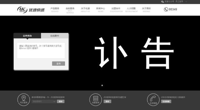 目前,优速快递官网页面已变成了肃穆的黑白色调。
