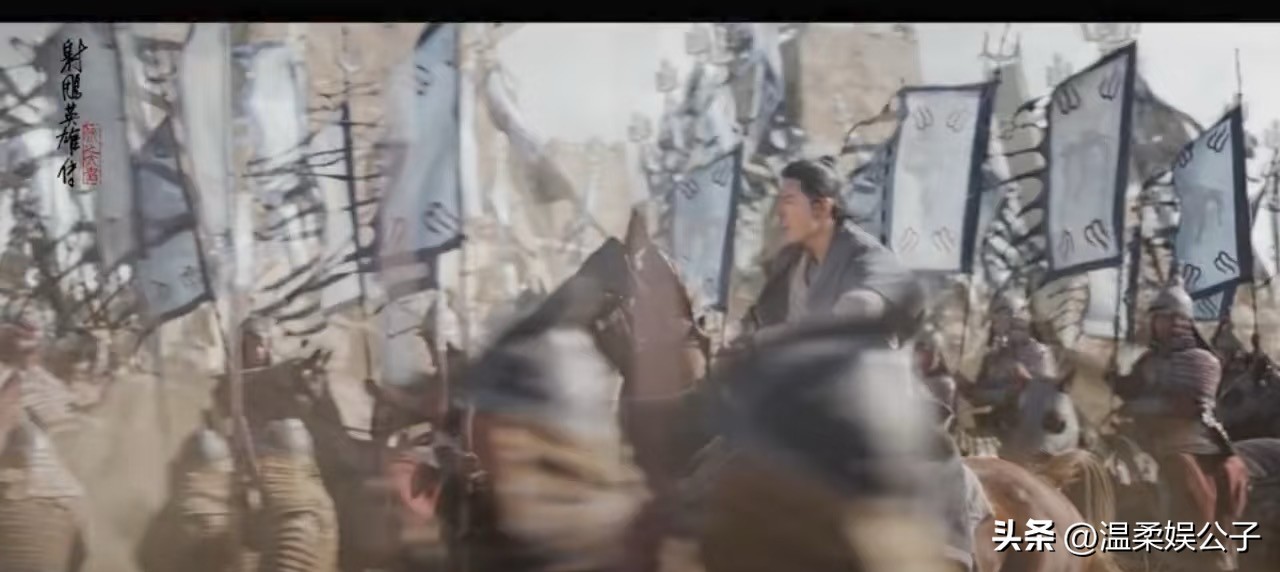 不论是郭靖,还是黄蓉,无一例外,都不再身着粗布麻衣,画面中也没有了鲜艳的色调来点缀。映入眼帘的,唯有那铺面而来的尘土,以及那粗粝的现实感。这种巨大的风格转变,只叫观众一时之间难以接受。