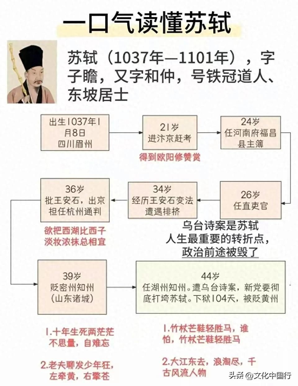苏轼的一生,是一个顶级学霸历经波折,被磨平了棱角,却依然保持乐观初心的一生。无论多少次贬谪,苏轼在政治上始终坚持自己的信念和原则,但在性格和文字上,他却越来越平和洒脱。岁月磨平了他的棱角,却让他更加从容豁达。