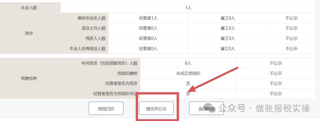 7、根据实际情况录入单位信息,选择【不公示】,点击【保存】。