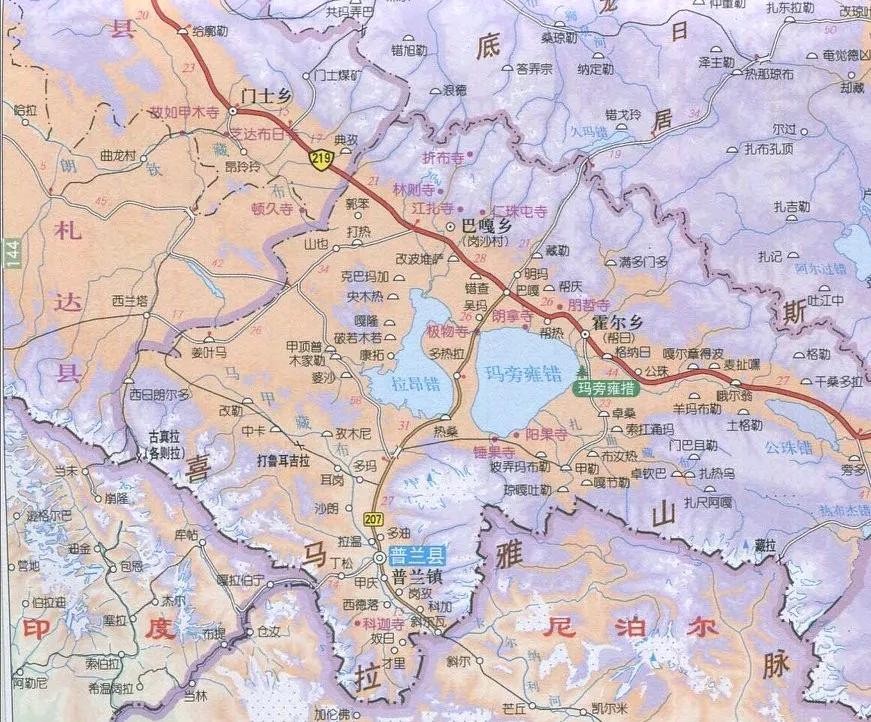 普兰县,在喜马拉雅山西段西藏与尼泊尔边界接壤的孔雀河畔。位于西藏西南部、阿里地区南部、喜马拉雅山南侧的峡谷地带及中国、印度、尼泊尔三国交界处。面积1.319万平方千米。