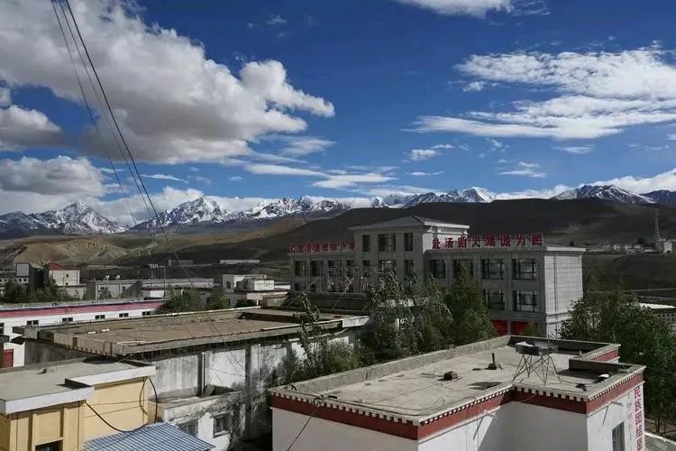 “尼泊尔大厦”是当地人对朝圣的尼泊尔人所聚居的山洞屋的戏称,在县城对岸山上,为一个个仿似巢穴的洞屋,远看像一座楼房大厦,是来朝圣或经商的尼泊人的住所。