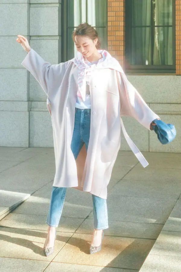 用牛仔裤、阔腿裤登单品搭配宽松外套,然后再把T恤用作披肩褂,营造一种无忧无虑的休闲时髦感。