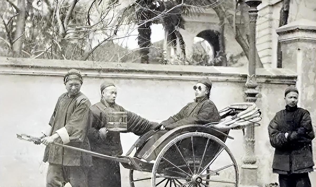 清晚期时的一个八旗子弟的日常,出门有人拉车,鸟笼有人提。