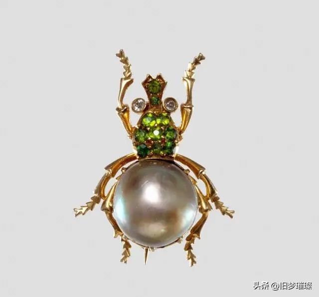 虫子胸针是一件19世纪的珠宝艺术品,归大都会艺术博物馆所有。它的主体是一颗巨大的天然灰绿色珍珠,身体上有八颗浓绿榴石,头上还有两颗浓绿榴石和钻石眼睛。