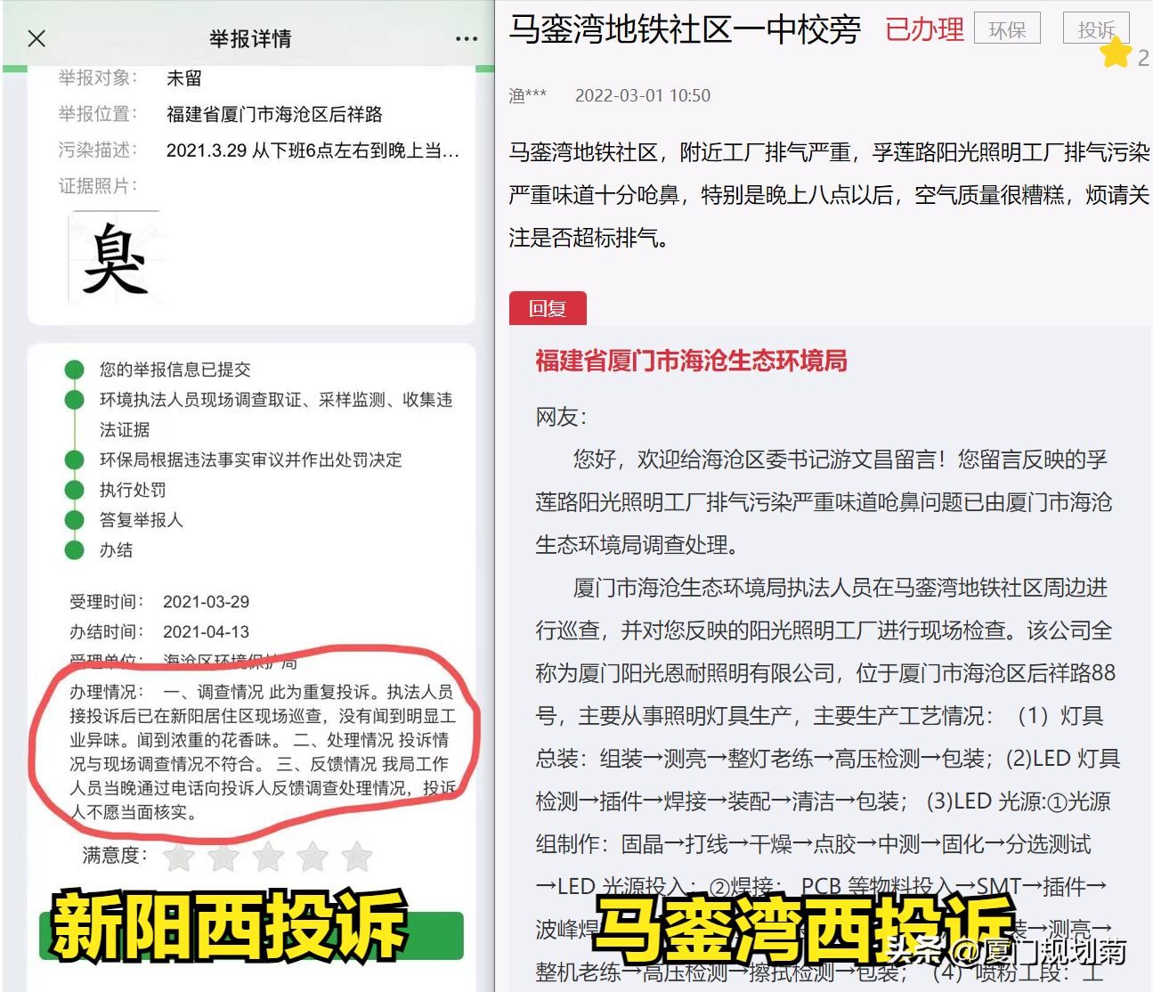 再看下外因影响。一中海沧校区位于马銮湾西片区,南侧为新阳西所在新阳工业区,西侧为生物医药港(东孚工业区、孚新工业区)。工业区有潜在的空气问题投诉。查询2单有投诉空气后续核实反馈是花香或者并未发现污染。