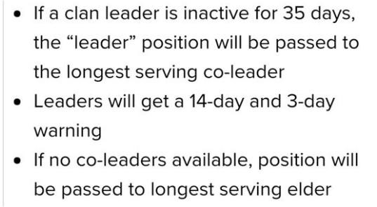 为了保证部落的活性,官方决定系统干预部落官员职位的选举,首领如果超过35天不在线的话,会自动让位给最近在线时间最长的副首领,如果没有副首领则会让位给长老。首领会在即将退位的14天与第三天前收到官方的警告。