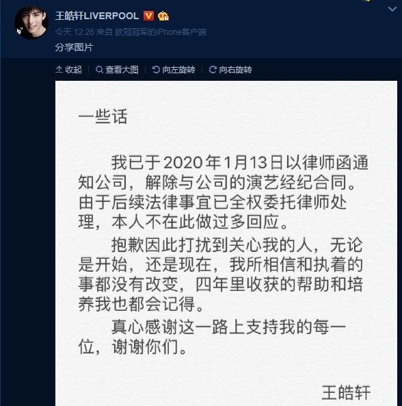 想必大家对于今年夏天火热了一个季度的《陈情令》,就算没有看过,也已经有所了解了。这部剧不仅在国内大火,还火到了泰国跟韩国。当时拍摄这部大IP的时候因为粉丝基础太过于强大,几度出现了比较出名的明星无人敢拍的情况,剧组也是清一色选择了新人演员们,这部剧之后的高热度也是让这些新人演员们一炮而红,都有了更好的发展,在其他人都通告新戏接不停的时候,薛洋的扮演者王皓轩却发文宣布与公司解约。