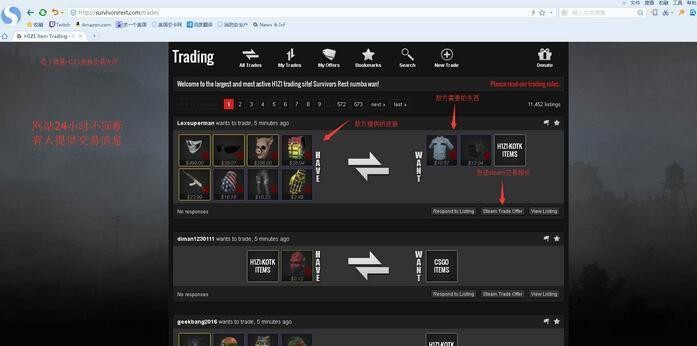 1、直接进入国外皮肤交易网站:survivorsrest.com.然后右上角登录你的steam