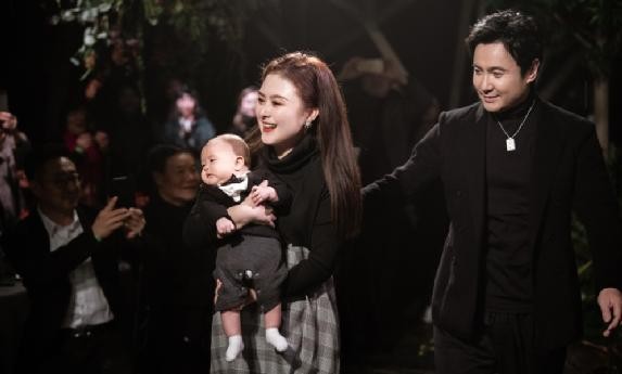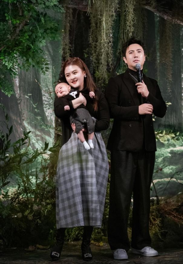 为了与西装外套形成呼应,沈腾选择了一条黑色的西装裤,裤子的面料挺括,版型简单,裁剪干净利落,完美地贴合了沈腾的身材体型。妻子的裤子是牛仔的直筒裤,布料有弹性,但不会觉得臃肿,所以也可以在视觉上拉长腿型。