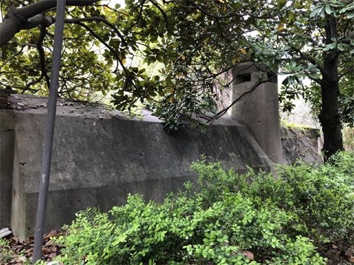 这座碉堡,看起来就像一个大型水泥潜水艇,长约12米,宽约5米,地面以上部分有3米,混凝土墙体的平均厚度达到近半米,外侧表面分布着大小十多个弹坑痕迹,70年前激烈的战斗仿佛历历在目。