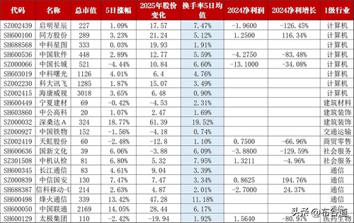 第一、股价涨幅情况:48股近五日股价上涨,12股近五日股价涨幅超7%,分别是深桑达A、中国联通、烽火通信、太极股份、机器人、星图测控、成都华微、南网科技、中信国安、新华网、内蒙一机、金自天正,其中深桑达同时叠加了deepseek、算力、算力租赁、云计算等热门概念成为了近期涨幅最好的央企Ai股