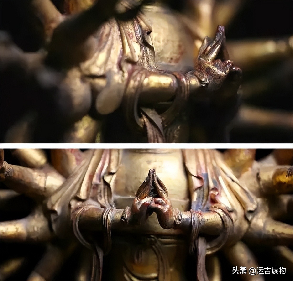 由于早几年的春晚舞蹈节目,使得千手观音的形象相当深入人心。不过佛教供奉的千手观音,一般有两种造型。一种是当真塑造出一千只手臂,而掌心都有一只眼睛。千手千眼如同孔雀开屏一般,罗列在观音身后。还有一种造型则通常是二十七目、四十二臂, 手中分别执有法器。