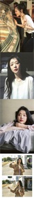 扶着门框这张完全是调皮的小女孩模样,棉质衣服也让她的气质更加柔软温和,很可爱的一张照片~