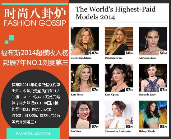 走一步路就能赚45万美金,连续9年占据超模收入榜冠军。