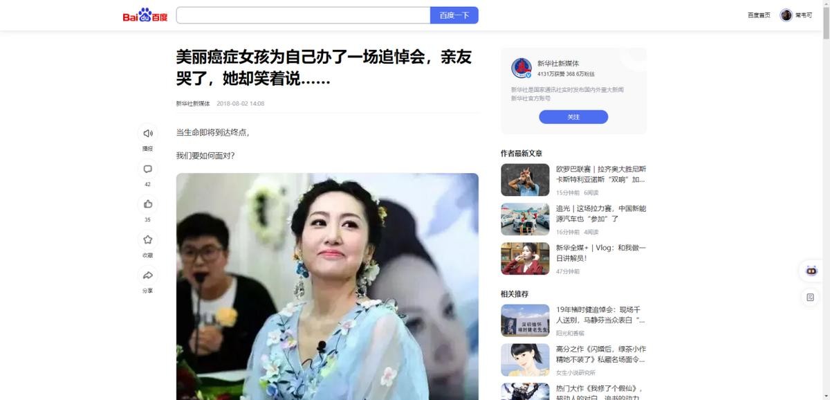 新华社新媒体 2018-8-2——美丽癌症女孩为自己办了一场追悼会,亲友哭了,她却笑着说……