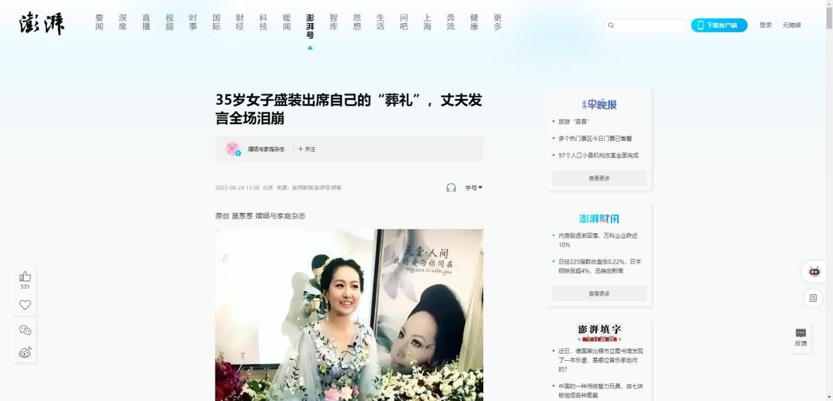 婚姻与家庭杂志 2023-8-24——35岁女子盛装出席自己的“葬礼”,丈夫发言全场泪崩