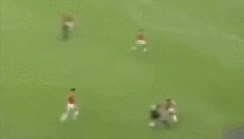 从动图上可以看得很清楚,这种双脚配合的一拉一磕,罗纳尔多用自己的脚下灵活性和爆发力结合,将对方过个干干净净。可以看到的是,大罗在比赛中很喜欢用脚底踩球的技术动作,来完成一些即兴的过人。