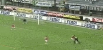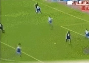 这是一粒发生在罗纳尔多效力巴萨时的进球,当时他用惊人的加速,瞬间就破开了在他身前的4名防守人,随后将皮球送入了对方的网底。
