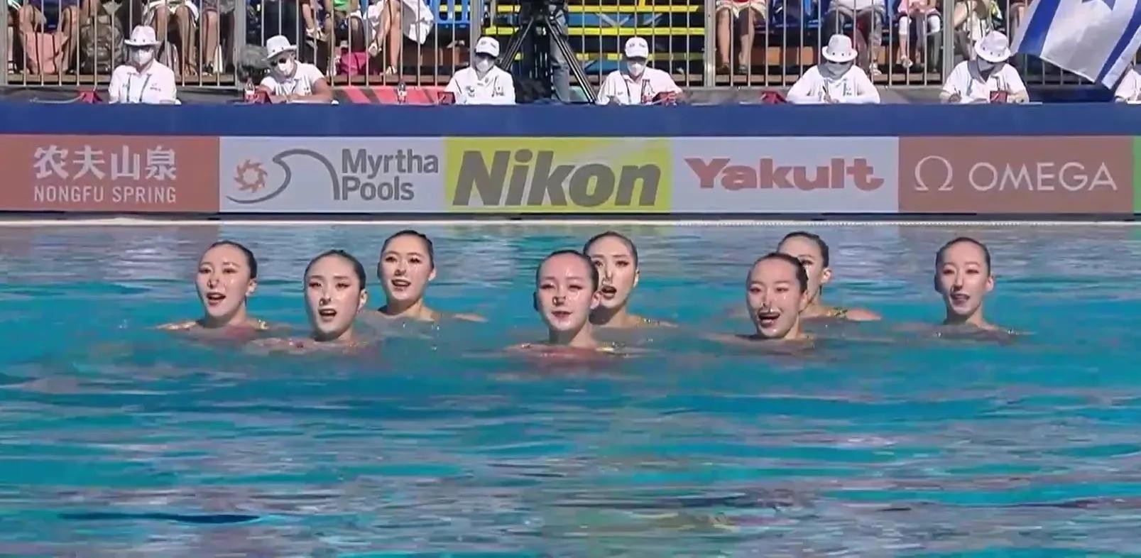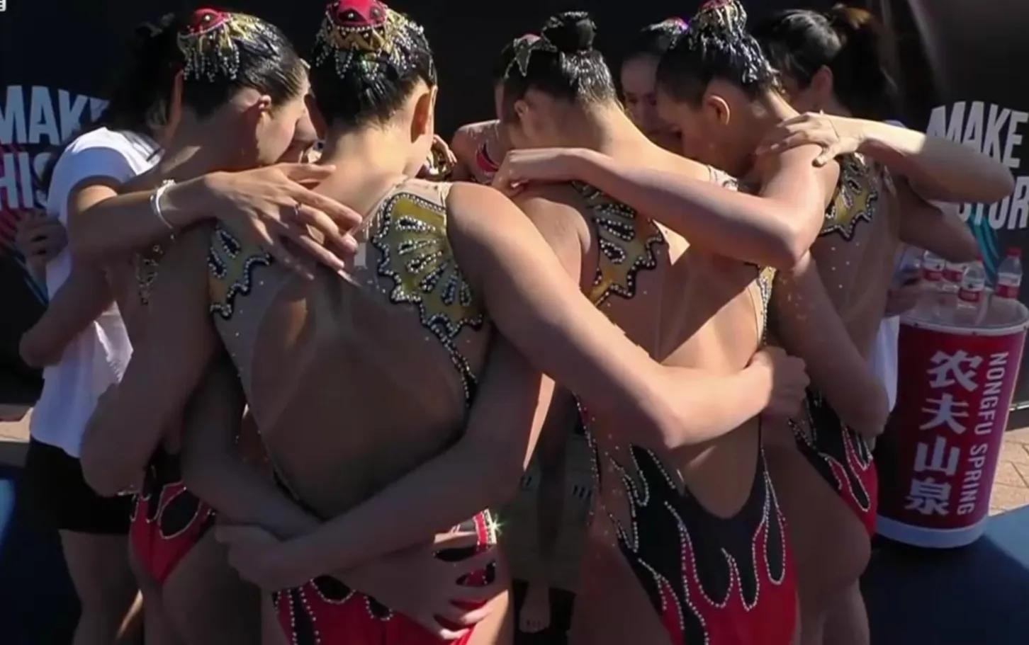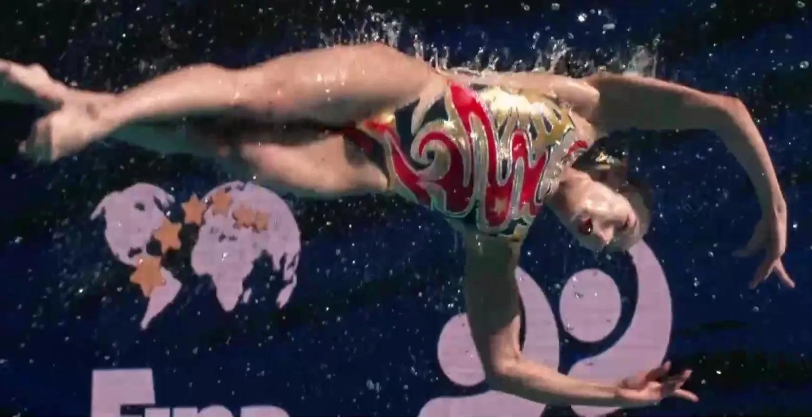 中国队八朵金花表演追梦主题的节目,一曲《我爱你中国》让现场的中国观众听到热血沸腾,来到水下表演八朵金花展现高难度的动作惊艳全场,每一个动作都是如此准确到位,整个表演过程只能用完美来形容。