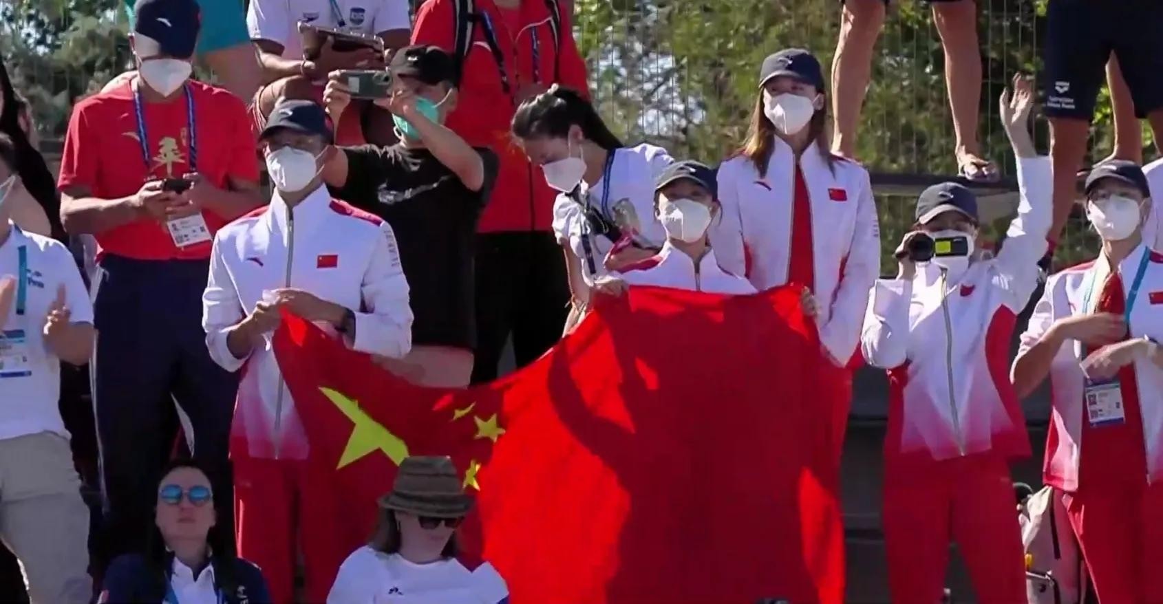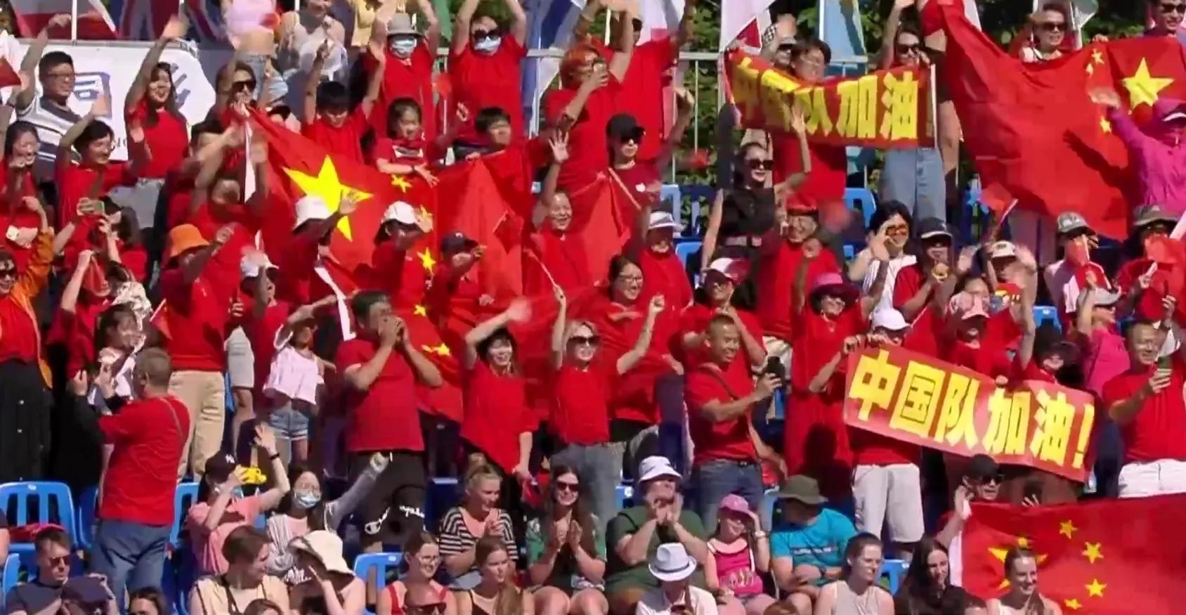 第二金!中国八朵金花完美绽放,现场中国观众高举国旗,解说哽咽