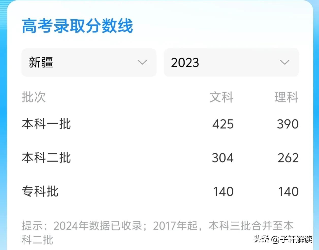 对比2023年新疆高考分数线,基本一样,没有太多变化。有网友表示,分数这么低,我想去新疆参加高考!
