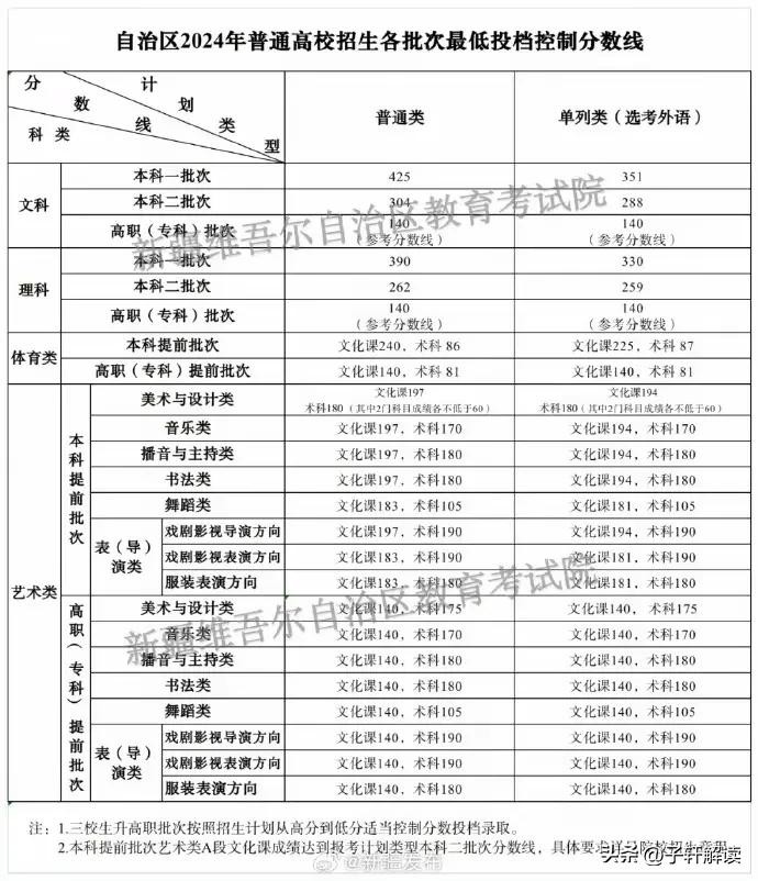 6月25日下午,新疆自治区招生委员会召开全体会议,研究确定了自治区2024年普通高校招生各批次最低投档控制分数线,现正式公布。