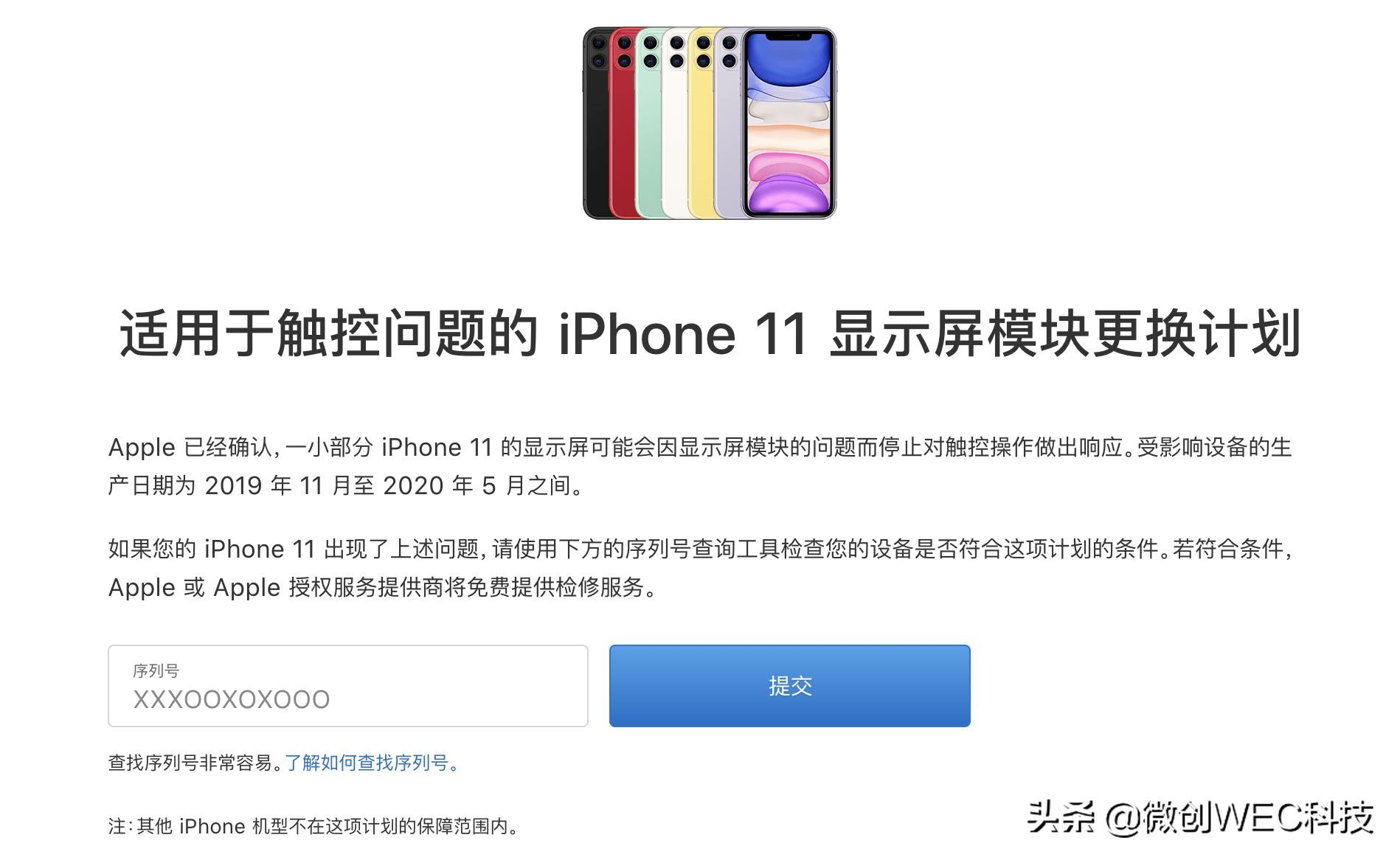 今日,苹果官方推出了针对iPhone 11屏幕触控问题的更换计划,针对2019年11月到2020年5月份之间的iPhone 11机型,假如有小伙伴的机型在这段时间生产的,并且你觉得它的屏幕存在问题的话,可以向苹果官方提出更换屏幕。